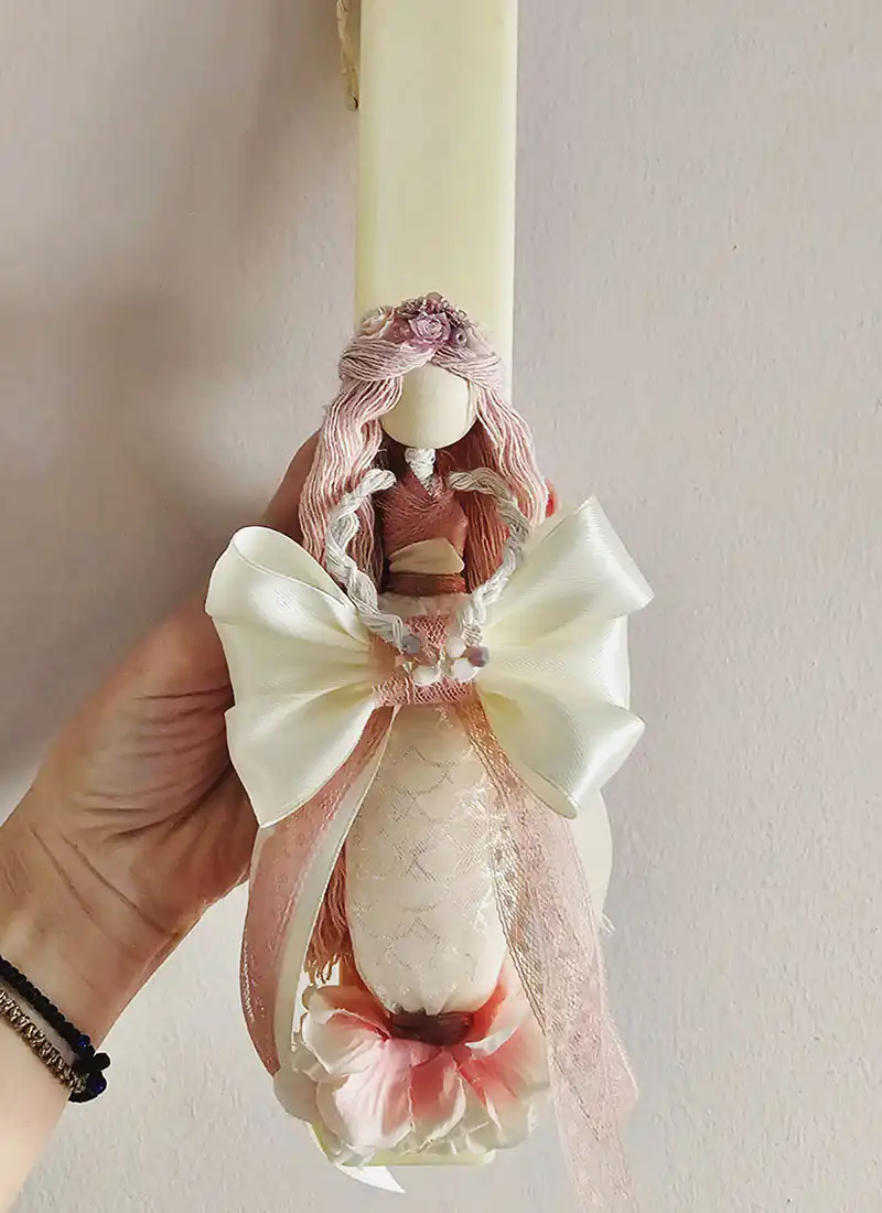 Μια ξεχωριστή πασχαλινή λαμπάδα διακοσμημένη με κούκλα γοργόνα, εμπνευσμένη από τον μαγικό κόσμο της θάλασσας.